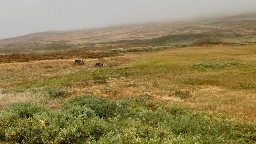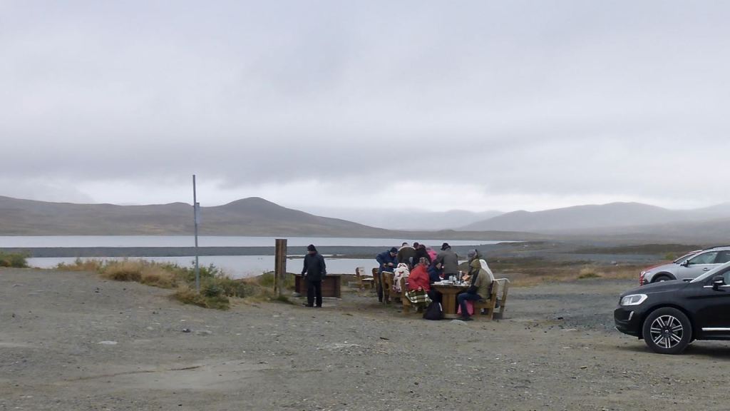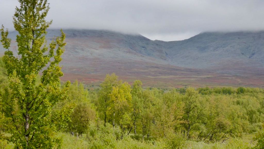 Auf der Weiterfahrt in die Berge von Norra Borgafjälla begleitet uns dann wieder der Nebel und der Nieselregen. Ein tief fliegender Helikopter und mehrere 4-Wheeler geben uns dann den Einblick in das moderne Samenleben. Hunderte von Rentieren werden so zusammen getrieben. Durch das kühle und feuchte Wetter an der Grenze zu Norwegen lassen sich aber schwedische Touristen nicht davon abbringen den Wanderrucksack zu Schultern oder ein Picknick auf dem Parkplatz abzuhalten.