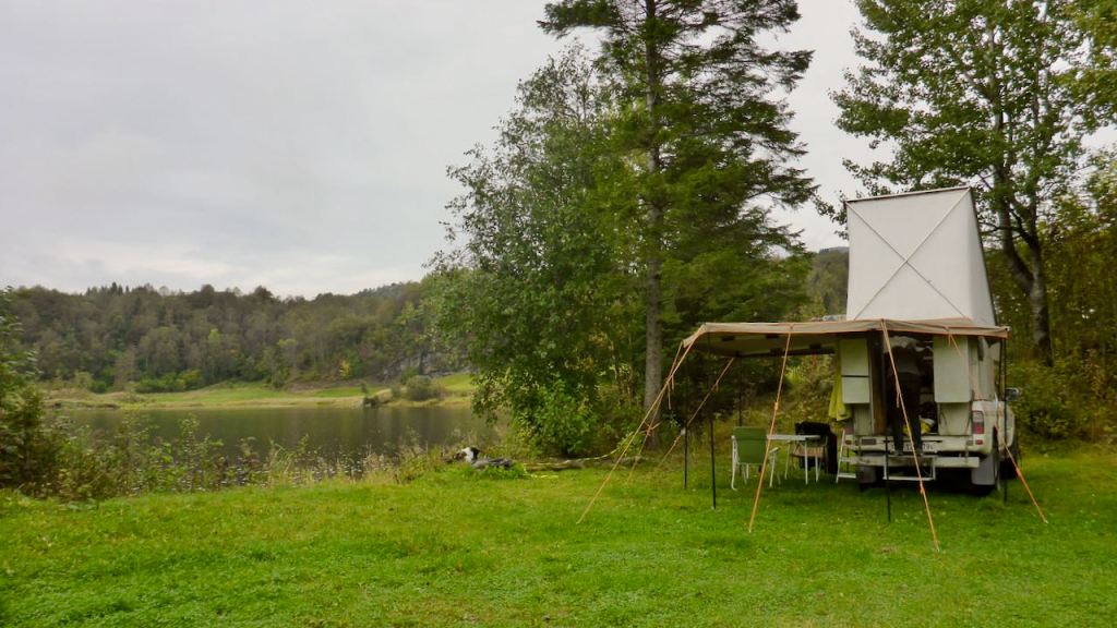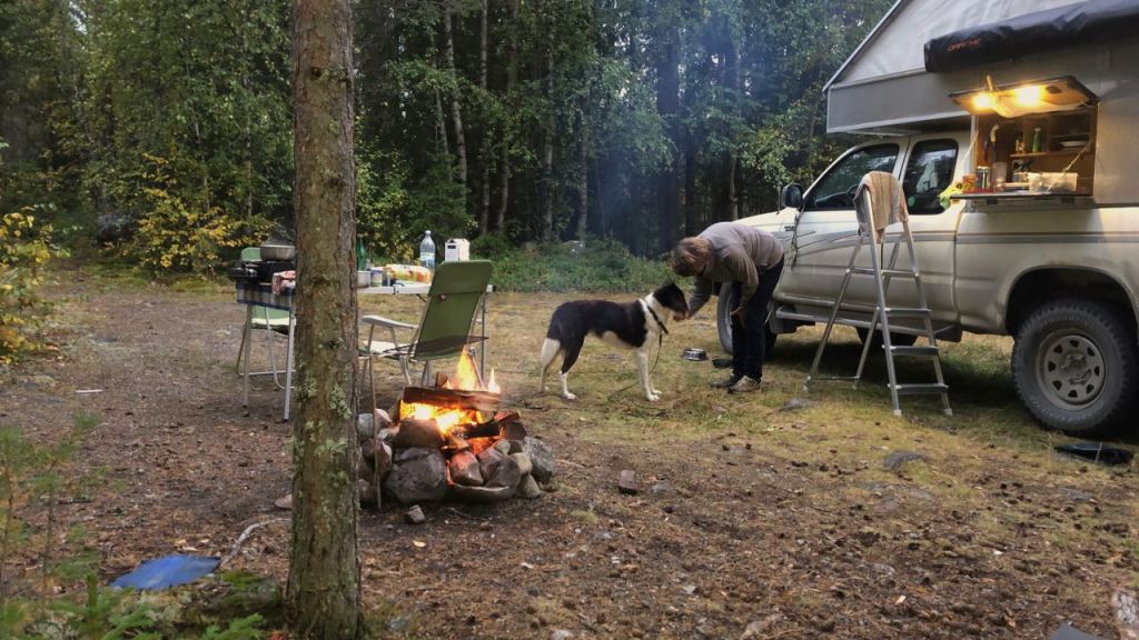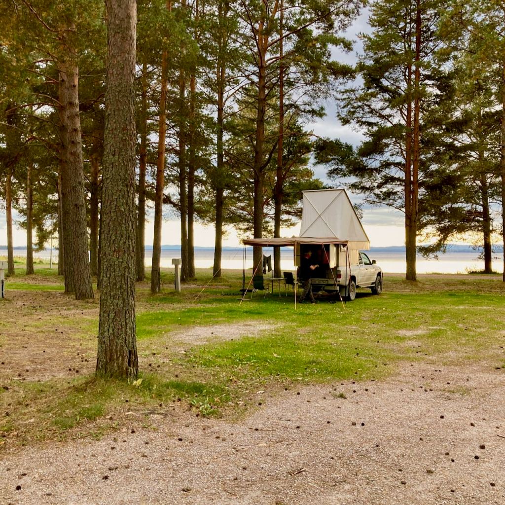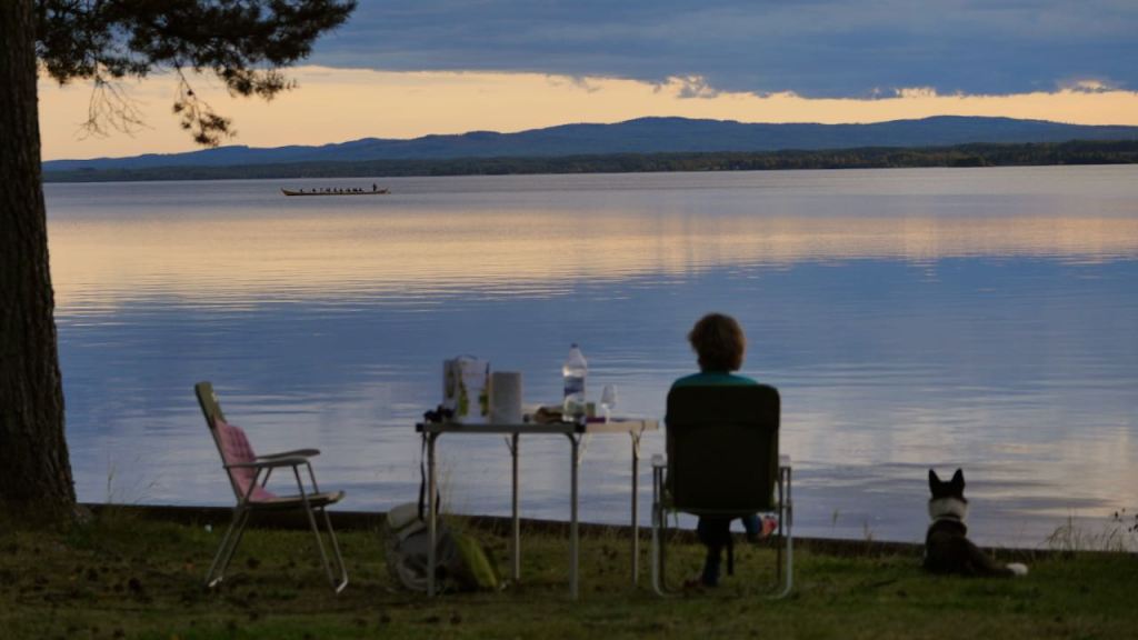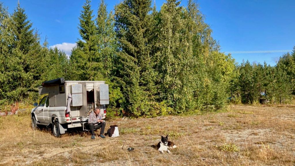 Der Strasse 70 folgend machen wir uns von Mora nach Norden zur Grenze nach Norwegen auf. Wir begaben uns fahrlässigerweise ohne die Weinvorräte aufzufüllen auf den „trockenen“ Weg in Richtung Grenze, die wir gegen Abend erreichen. Zwei bärtige norwegische Soldaten stellen sich uns dort in den Weg erklären, dass die Grenze geschlossen ist. Auf meine Frage ob es an der späten Tageszeit liegt verneinen Sie und wir erfahren, dass Norwegen auf Grund der Covid-Situation nur noch die grösseren Übergänge zu Schweden offen hält. Der nächste offene Grenzübergang liegt mind 3 Fahrstunden weg und zurück zum Abzweiger heisst 70 km zurückfahren. Baldige Übernachtung ist angesagt. Die finden wir entlang dem Fluss Österdaläven, wo es mehrere sehr schöne, primitv ausgerüstete Lagerplätze gibt.