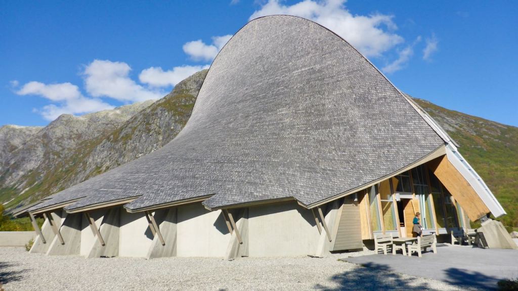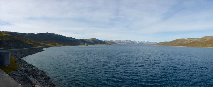 Der Rückweg zum Sognefjord führt uns durch erst bewaldete Bergtäler und dann höhere und immer kargere Gebirgspässe. Wie immer wieder in Norwegen begegnen wir auch hier architektonisch expressionistischen Aussichtspunkten und Rastplätzen welche die spektakuläre Aussicht zu konkurrenzieren versuchen. In Balestrand schliesst sich ein Kreis am Sognefjord. Nach dem Übersetzen mit der Fähre nach Vangnes muss unser Flöckli bereits den dritten Passübergang am gleichen Tag in Angriff nehmen. Die andere Seite des Passes Vikafjell wird durch einige unschöne Skiorte geprägt so auch Voss wo wir dann nach einer langen Etappe unser Dach aufstellen.
