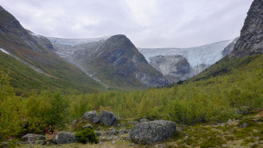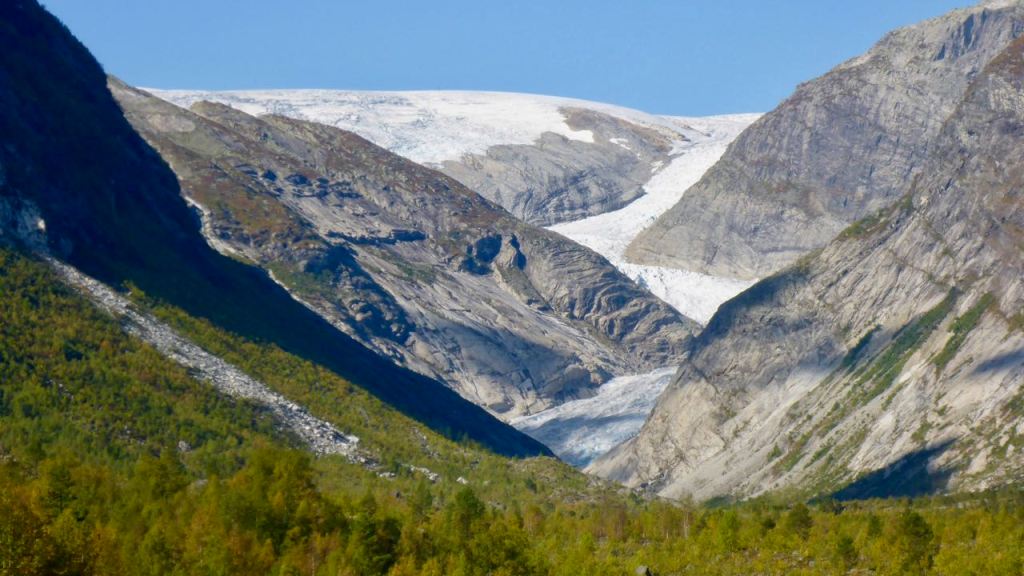 Am folgenden prachtvollen Tag wechseln wir von der Süd- zur Nordseite und fahren ins Gebirgstal Jostedalen mit seinen Gletschern. Dort geniessen wir zwei schöne Herbsttage und wandern von Gletscherzunge zu Gletscherzunge.