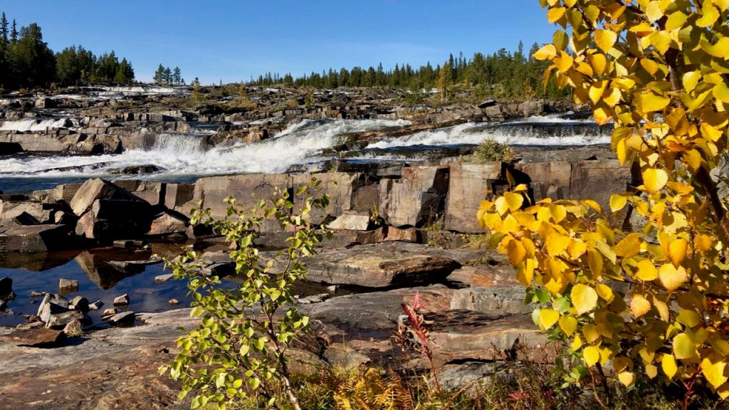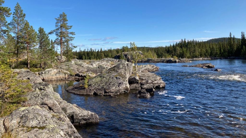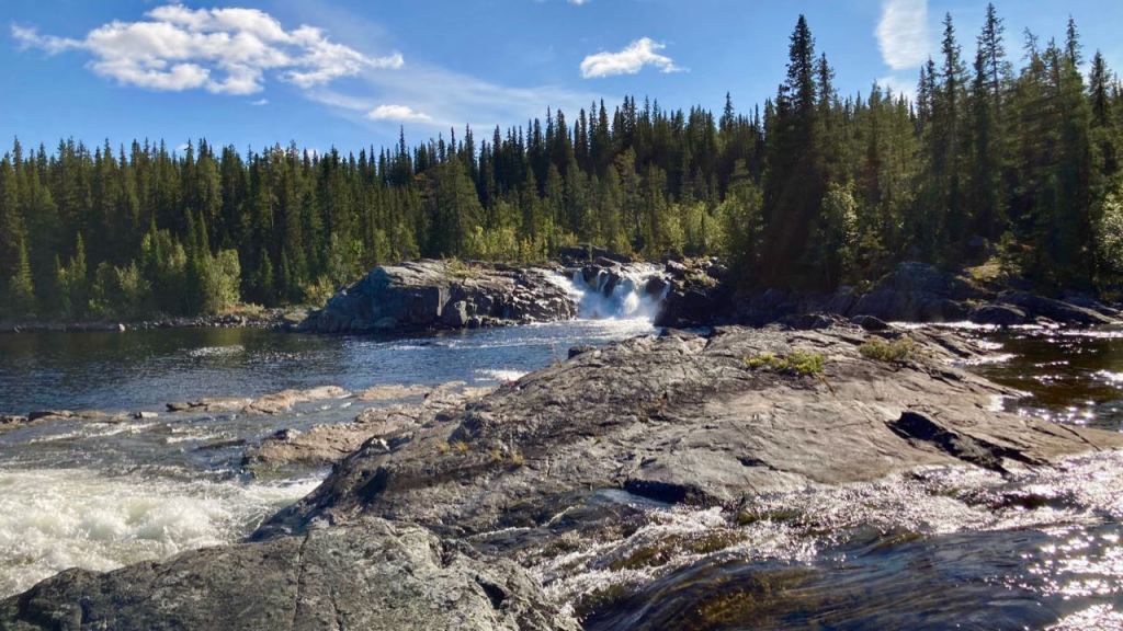 Bei schönstem Wetter dem langen See Malgomaj, den Flüssen und Stromschnellen folgend erreichen wir am späten Nachmittag Saxnäs, ein touristisch gut erschlossener Ort, so gut, dass wir beschliessen noch etwas weiter der schmalen Strasse zu folgen und den Abzweiger nach Fatmomakke zu nehmen.