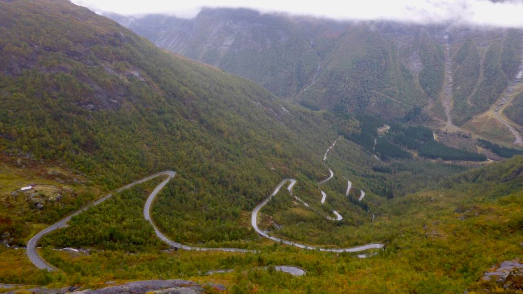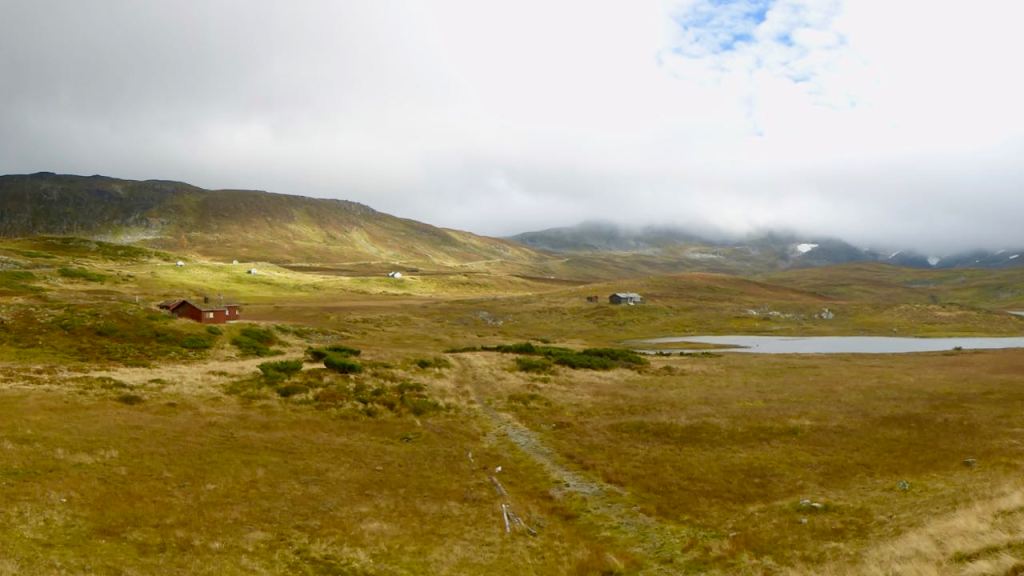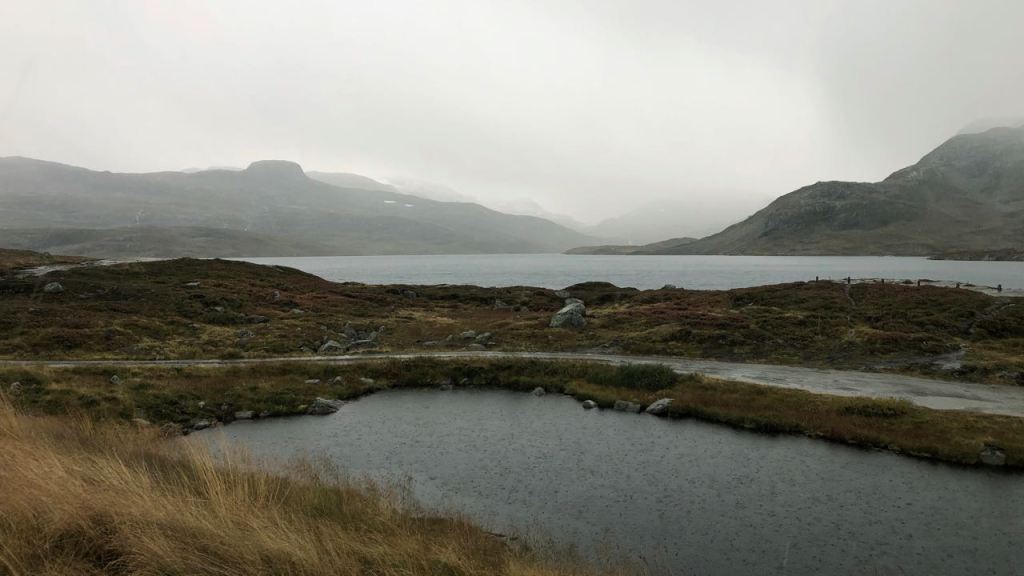 Von Bergen nach Oslo stehen uns nun die Königsetappen über den skandinavischen Schild bevor. Nach den Apfelplantagen in Sørfjord, die Äpfel sind wirklich gut, erreichen wir den scheinbar bei Adrenalinjunkies angesagtesten Bergort in Norwegen. So treffen sich hier junge und jungebliebene Outdoorfans aus ganz Europa um auf den Gletscher zu gehen, den Adrenalinpark zu besuchen und so weiter. Die Preise, in Norwegen generell schon sehr hoch, steigen für einfachste oder eher üble Unterkünfte in unmoralische Höhen. So entscheiden wir trotz der vorangesagten, regenreichen und stürmischen Nacht im Flöckli zu schlafen und bringen uns auf dem Campingplatz in eine möglichst optimale Position. Die Nacht bringt den versprochenen Sturm. Der neue Tag beginnt wie der alte geendet hat, mit viel Regen und Wind.