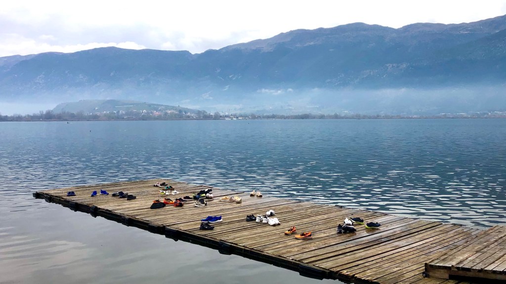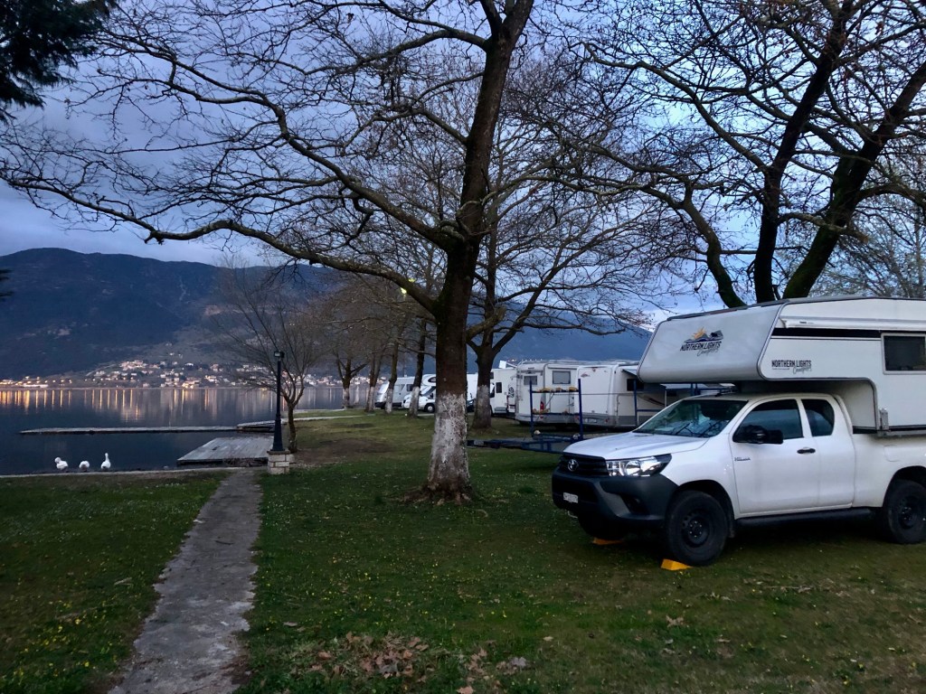 Eine ereignislose Überfahrt bringt uns nach Igoumenitsa wo wir mitten in der Nacht einen Stellplatz eine Bucht südlicher finden. Allzu viel Zeit wollen wir ja insgesamt in Griechenland nicht verbringen und so reisen wir am Morgen weiter nach Ioánnina. Die Temperaturen sind wie angesagt relativ tief und wir erwarten auf den wenigen offenen Campingplätzen kaum viel Betrieb. Doch das sieht am See in Ioánnina ganz anders aus. Der Motorhome Klub von Griechenland macht an diesem verlängerten Wochenende ein Treffen und der ganze Platz ist mit Wohnmobilen voll gestellt. Doch für uns gibt es auch noch ein etwas peripheres Plätzchen direkt am See. So können wir die direkt angegliederten Ruderer beobachten beim ein- und auswassern.