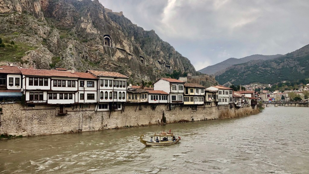 Danach in einem warmen Sturm erreichen wir die Stadt Amasja, mit den spätosmanischen Häusern am Fluss, eine der wenigen städtebaulichen Perlen, die wir in der Türkei bis jetzt gefunden haben.