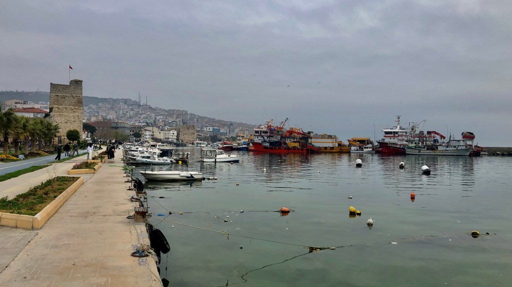Nun geht es wirklich ans Meer, das Schwarze. Zuerst tauchen wir in Nebel ein um nur kurz über Meereshöhe wieder einigermassen klare Sicht zu erhalten. Sinop, von vielen Touristen besucht, zeigt sich zaghaft freundlich, der Charme aber bleibt noch etwas unter der Wolkenschicht und aber auch untener dem typischen türkischen unsorgfältig Umgang mit der Bausubstanz verborgen.