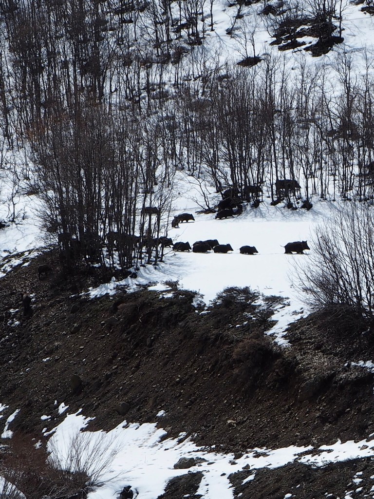 Wir erreichen immer wieder Höhen mit Schnee und nach einem erfolglosem Versuch mit Mara in diesem Laufen zu gehen; die Jandarma hat uns nach Überprüfung unserer Papiere klargemacht, dass es hier viel zu gefährlich sei sich ausserhalb des Fahrzeuges auf zu halten, haben wir dann doch noch eine unbehelligte Ecke gefunden um mit Mara den Schnee zu geniessen. Dabei haben wir wohl das Durchgangsrecht einer Wildschweinrotte in Frage gestellt, kaum waren wir wieder im Auto nahmen sie es wieder in Besitz.