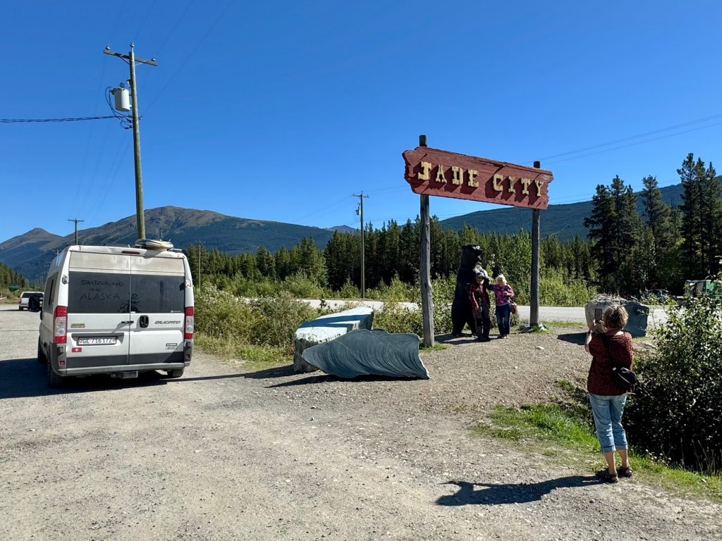 Gegen Süden, Richtung des ehemaligen Bergwerksorts Cassiar, erreichen wir den heutigen Ort Jade City, wo der noch spärliche Tourismus doch schon den Jadeabbau etwas konkurrenziert.